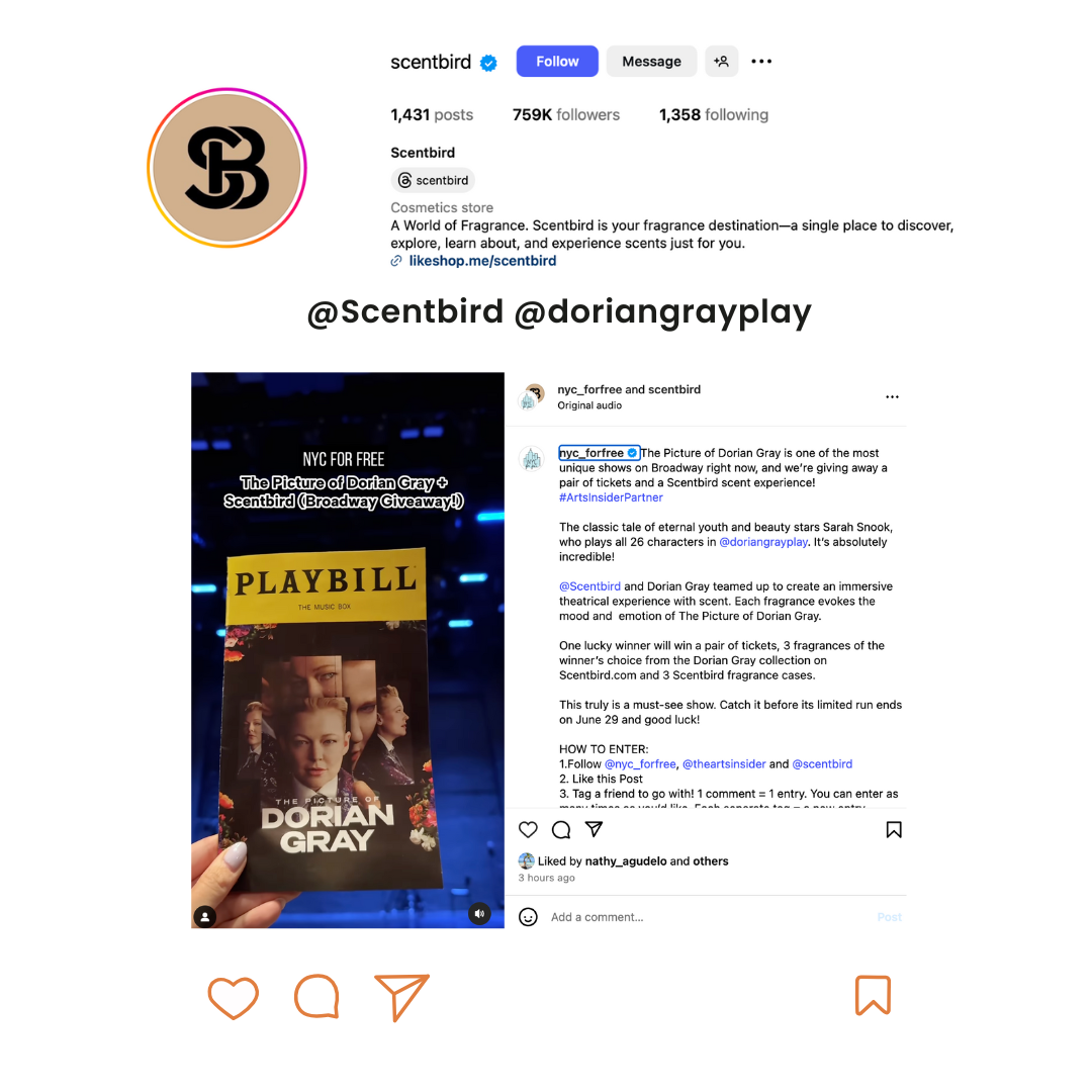 From theater fans and Succession devotees to fragrance collectors and lifestyle shoppers, the campaign bridged multiple interest groups. The influencer layer added warmth and voice. The sweepstakes added incentive. The collection added cultural texture.