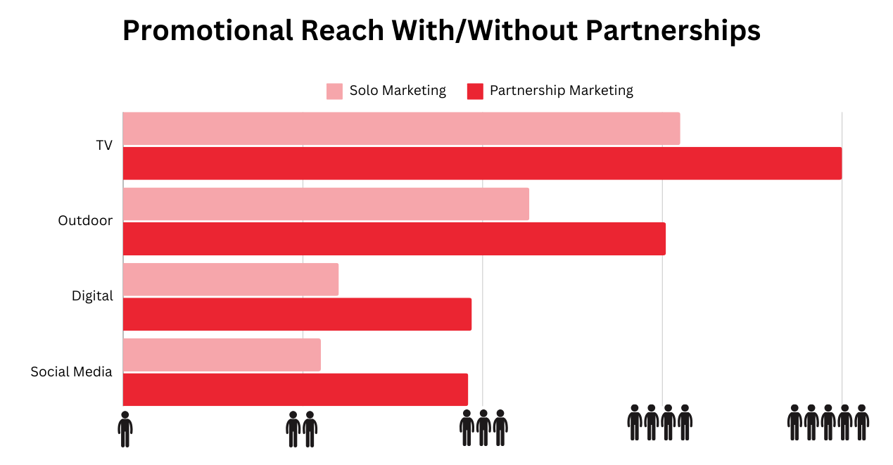 - Innovation Catalyst: Collaboration often sparks innovation. When two brands with different perspectives and expertise come together, it can lead to new ideas, activations, products or services that neither would have developed independently. This drives innovation and keeps your offerings fresh and competitive.